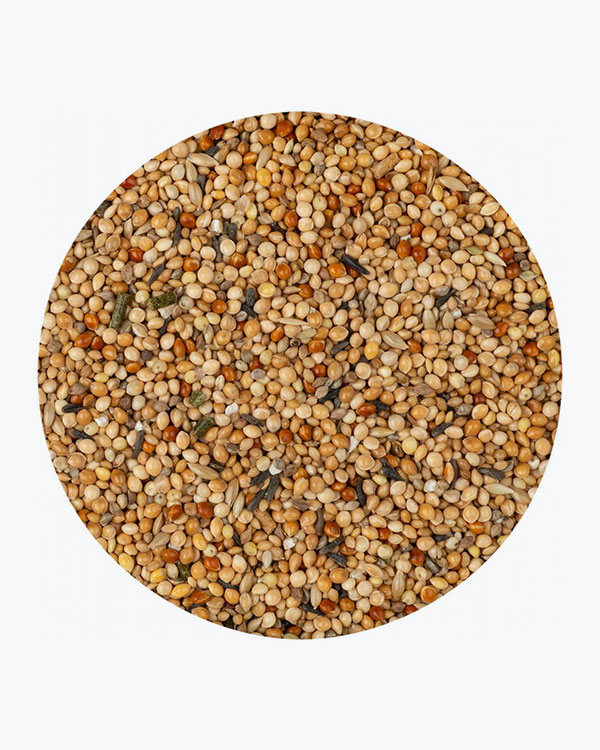 Состав: зерновые* (пшено 90%), семена* (канареечное семя 4%, нуг абиссинский 1,9%), минеральные вещества*, сушёная петрушка* 0,5%, сушёный тимьян* 0,25%, сушёный подорожник* 0,25%, масла и жиры, дрожжи (бета-глюканы 80 мг/кг).
