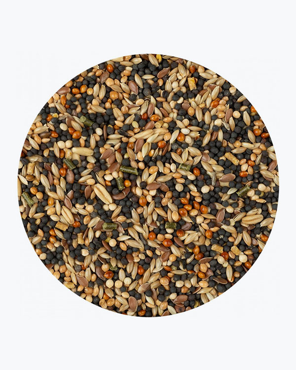 Состав: Семена - 64.7%, Злаки - 33%, Минералы, Масла и жиры, Продукты растительного происхождения, Мед - 0.02%, Дрожжи (Бета-глюканы 80 мг/кг), Кальций - 0.80%, Фосфор - 0.40%.
