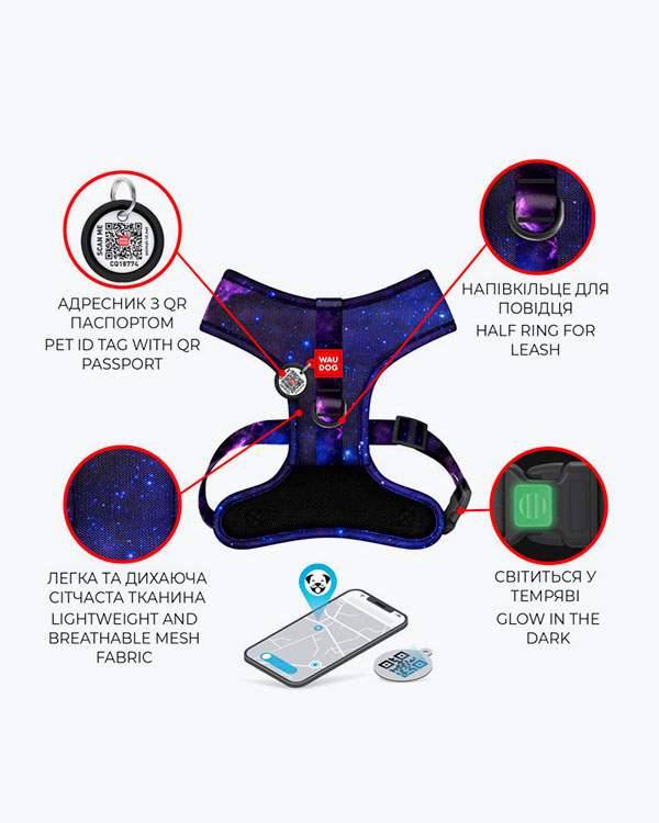 Шлей для собак WAUDOG Mesh дышащий, с QR адресником, рисунок NASA21, размер M