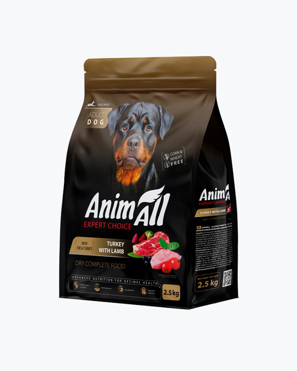 Сухий корм Animall, для дорослих собак великих порід, зі свіжою індичкою та ягням, 2,5 кг