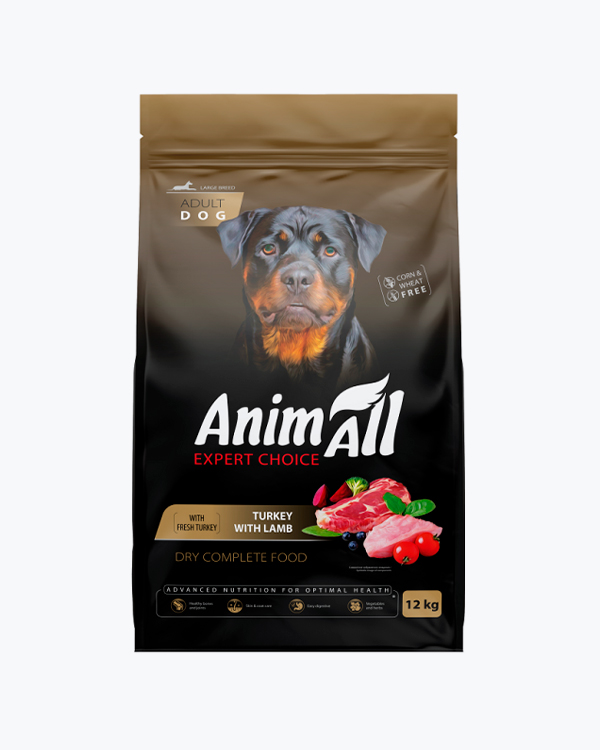 Сухий корм Animall, для дорослих собак великих порід, зі свіжою індичкою та ягням, 12 кг