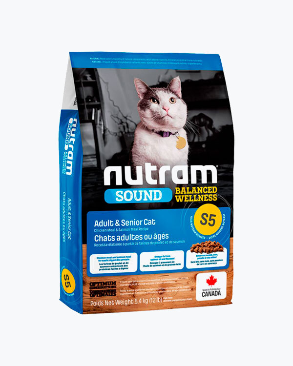 Сухий корм для дорослих кішок S5 Nutram Sound Balanced Wellness Natural Adult & Senior Cat Food, рецепт з куркою та лососем, 5.4 кг.