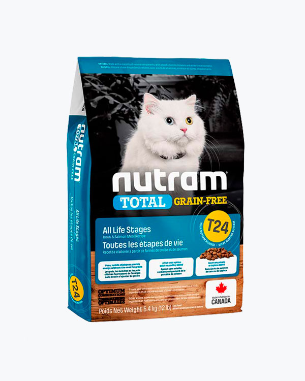 Сухий беззерновий корм для кішок T24 Nutram Total Grain-Free Salmon & Trout Cat Food, рецепт з лососем і фореллю, 5.4 кг.