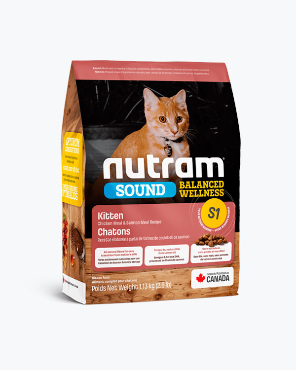 Сухий корм для кошенят S1 Nutram Sound Balanced Wellness Natural Kitten Food, рецепт з куркою і лососем, 1.13 кг.