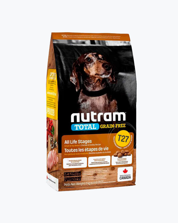 Сухий беззерновий корм для собак малих порід усіх життєвих стадій T27 Nutram Total Grain-Free Chicken and Turkey Recipe Small Breed Dog Food, рецепт з куркою і індичкою, 2 кг.