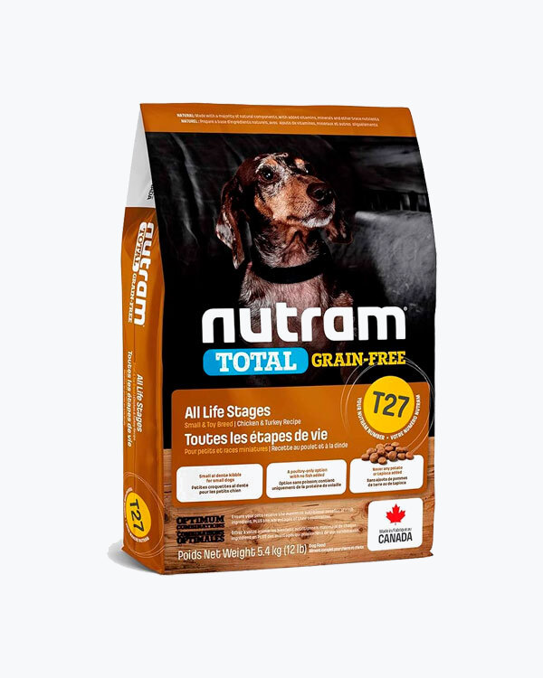 Сухий беззерновий корм для собак малих порід усіх життєвих стадій T27 Nutram Total Grain-Free Chicken and Turkey Recipe Small Breed Dog Food, рецепт з куркою і індичкою, 5.4 кг.
