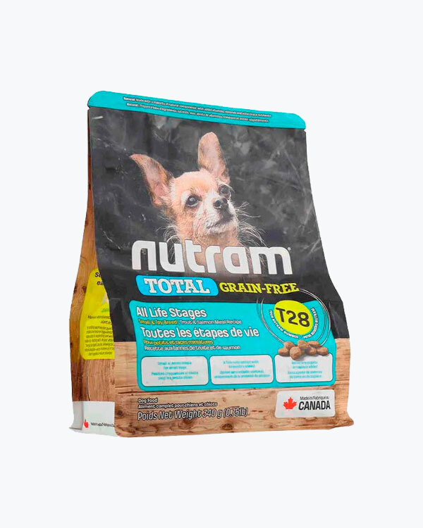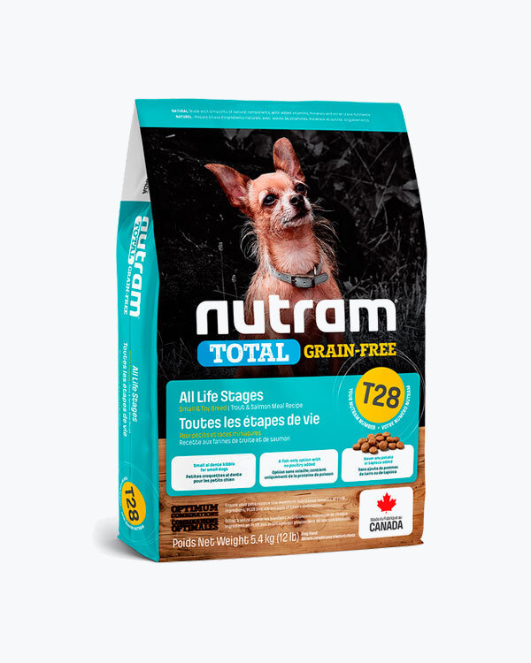 Сухий беззерновий корм для собак малих порід усіх життєвих стадій T28 Nutram Total Grain-Free Trout and Salmon Recipe Small Breed Dog Food, рецепт з лососем і фореллю, 5.4 кг.