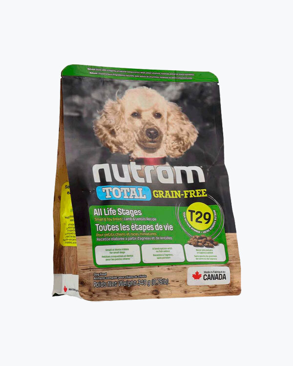 Сухий беззерновий корм для собак малих порід усіх життєвих стадій T29 Nutram Total Grain-Free Lamb and Lentils Recipe Small Breed Dog Food, рецепт з ягнятини та чечевиці, 2 кг.
