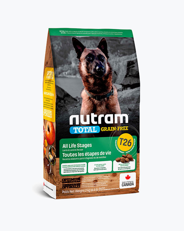 Сухий беззерновий корм для собак усіх життєвих стадій T26 Nutram Total Grain-Free Lamb & Lentils Dog Food, рецепт з ягнятини та чечевиці, 2 кг.