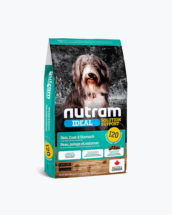 Сухий корм для дорослих собак з проблемами шкіри, шерсті або шлунку I20 Nutram Ideal Solution Support Sensitive Dog Natural Food, рецепт з ягнятини та коричневим рисом, 11.4 кг.