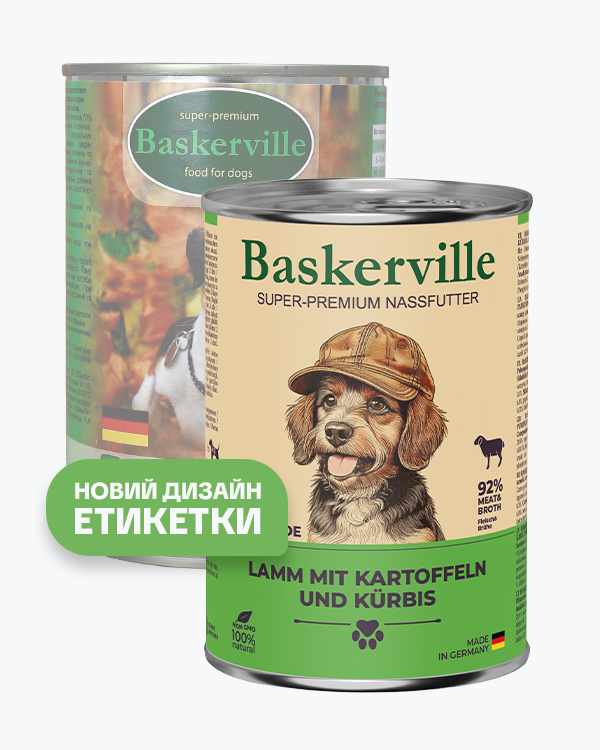 Вологий корм Baskerville – це повноцінний збалансований корм суперпреміум класу для собак з нормальною та підвищеною активністю. Баранина — корисне та поживне м’ясо для собаки, яке лідирує за вмістом магнію, необхідного для зміцнення кісток та фолієвої кислоти, яка дуже корисна для імунітету і серцево-судинної системи. До складу корму входить овочі, такі як гарбуз та картопля (є джерелом вітамінів групи B, РР, Е, С), мікроелементів, заліза, калію, фосфору, цинку та клітковини; каротини, які в організмі перетворюються в вітамін A, що необхідний для підтримки гостроти зору. Через нестачу вітамінів у собак може розвинутися м’язова слабкість, порушується репродуктивна функція, можливі патології нервової системи, саме тому правильно розроблений раціон важливий для нормального функціонування організму собаки.