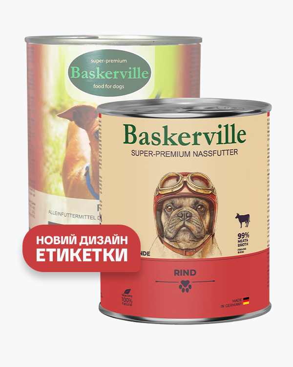 Вологий корм Baskerville – це повноцінний збалансований корм суперпреміум класу для собак різних порід та вікових груп. За рахунок м’яса яловичини, організм тварини отримує необхідну кількість мінеральних речовин, у першу чергу цинк і залізо. Також, цей вид м’яса цінується за вміст вітамінів – особливо групи В, Е, Н и РР. Лляна олія це корисні жирні кислоти, які необхідні для правильного обміну речовин, засвоєнню вітамінів, повноцінної та злагодженої роботи організму. Корисна для шкіри, мозку та кровоносної системи, при хворобах шлунково-кишкового тракту та проблемах з печінкою. Має протизапальні властивості, живить шкіру та робить шерсть тварини блискучою і шовковистою. Відсутність у складі корму зернових та бобових культур дозволяє уникнути алергічних реакцій, запальних процесів у кишечнику та нирках вашого домашнього улюбленця.