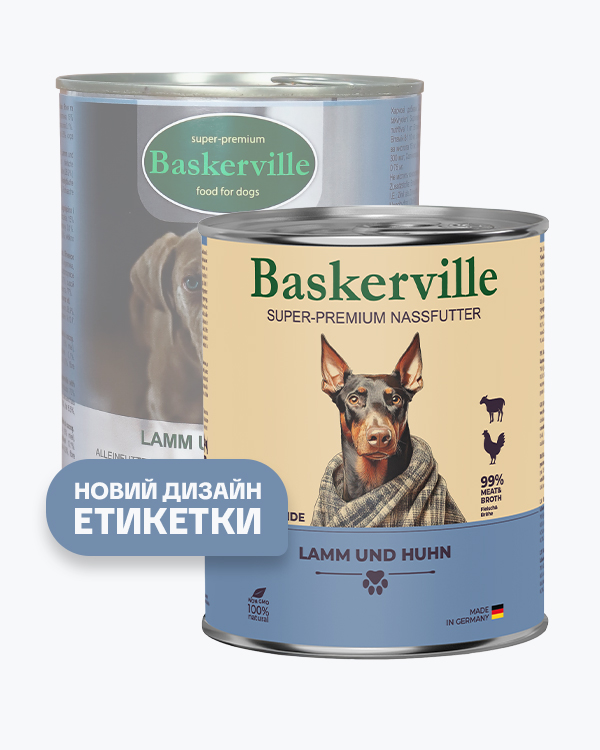 Вологий корм Baskerville – це повноцінний збалансований корм суперпреміум класу для собак з нормальною та підвищеною активністю. М’ясо ягняти лідирує за вмістом магнію, необхідного для зміцнення кісток, включає правильну кількість білка, але і містить правильний баланс вуглеводів, жирів, антиоксидантів та омега-жирних кислот. Відмінне поєднання ніжного м’яса добре засвоюється та містить у своєму складі велику кількість білків і амінокислот. Завдяки регулярному споживанню даного раціону можна значно покращити функціонування організму, нормалізувати кислотність в шлунку і підтримати нервову систему вашої тваринки необхідними компонентами.