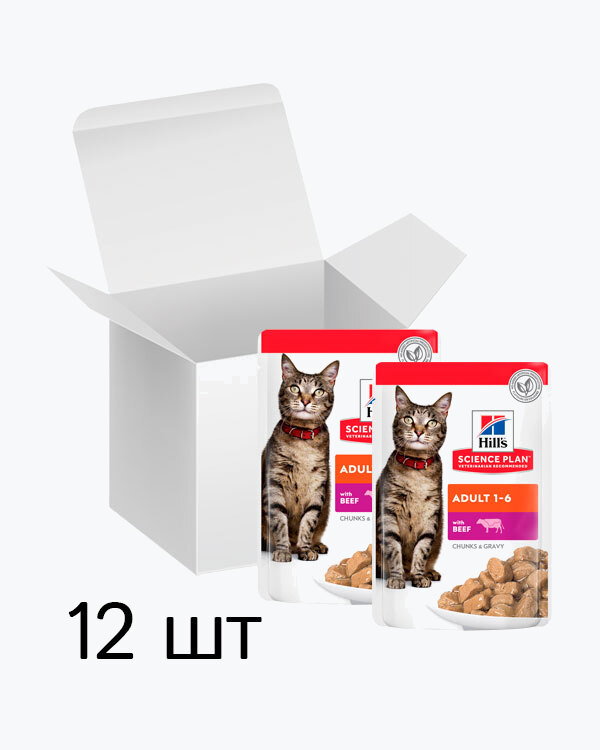 Вологий корм Hill's Science Plan Adult для дорослих кішок, з яловичиною, пауч, 85 г (12 шт)