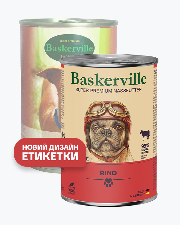 Вологий корм Baskerville – це повноцінний збалансований корм суперпреміум класу для собак різних порід та вікових груп. За рахунок м’яса яловичини, організм тварини отримує необхідну кількість мінеральних речовин, у першу чергу цинк і залізо. Також, цей вид м’яса цінується за вміст вітамінів – особливо групи В, Е, Н и РР. Лляна олія це корисні жирні кислоти, які необхідні для правильного обміну речовин, засвоєнню вітамінів, повноцінної та злагодженої роботи організму. Корисна для шкіри, мозку та кровоносної системи, при хворобах шлунково-кишкового тракту та проблемах з печінкою. Має протизапальні властивості, живить шкіру та робить шерсть тварини блискучою і шовковистою. Відсутність у складі корму зернових та бобових культур дозволяє уникнути алергічних реакцій, запальних процесів у кишечнику та нирках вашого домашнього улюбленця.