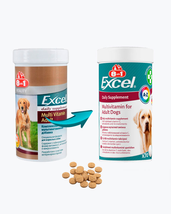 Відгуки на Вітаміни 8in1 Excel Multi Vitamin Adult для дорослих собак, мультивітамін, 70 шт