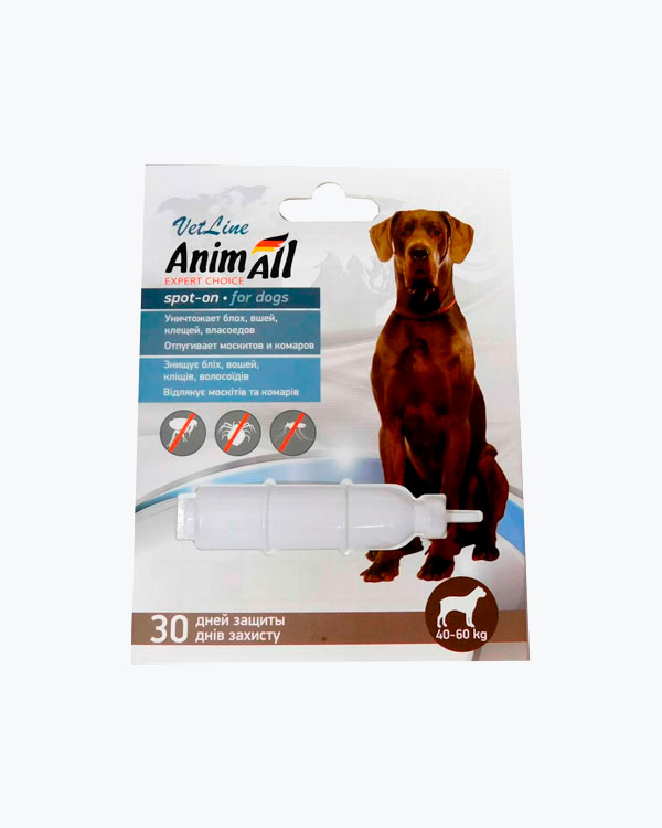 Протиопаразитарні краплі AnimAll VetLine Spot-On від блох і кліщів для собак від 40 кг до 60 кг