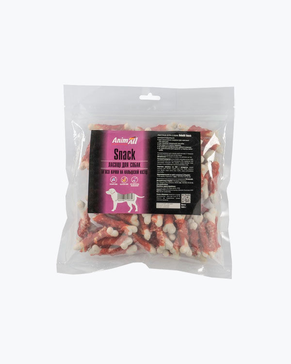 Ласощі для собак AnimAll Snack м'ясо качки на кальцієвій кістці, 500 г