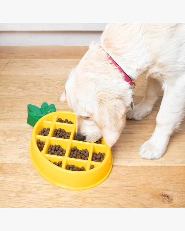 Дизайн миски дозволяє вашому улюбленцю споживати їжу у 10 разів повільніше, що сприяє запобіганню проблем зі здуванням живота, відрижкою та задушенням, сприяючи здоровій дієті та контролю ваги. Наявність нековзкої основи забезпечує стійкість миски, запобігаючи її ковзанню. Рельєфна внутрішня поверхня у формі ананаса уповільнює процес поїдання їжі, допомагаючи запобігти переїданню та покращити травлення. Миска підходить для сухого й вологого корму, легко миється та стійка під час використання