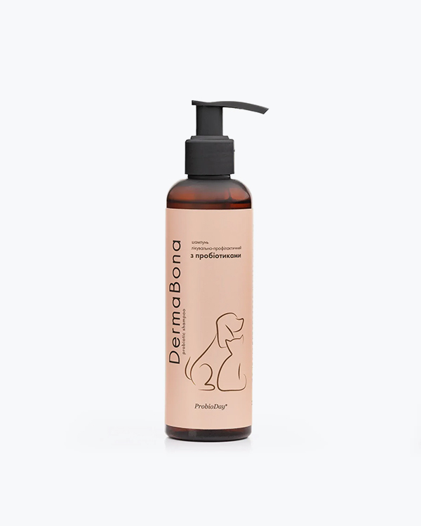 Лікувально-профілактичний шампунь DermaBona призначено для тварин з чутливою шкірою, хронічними шкірними захворюваннями та алергійними проявами.