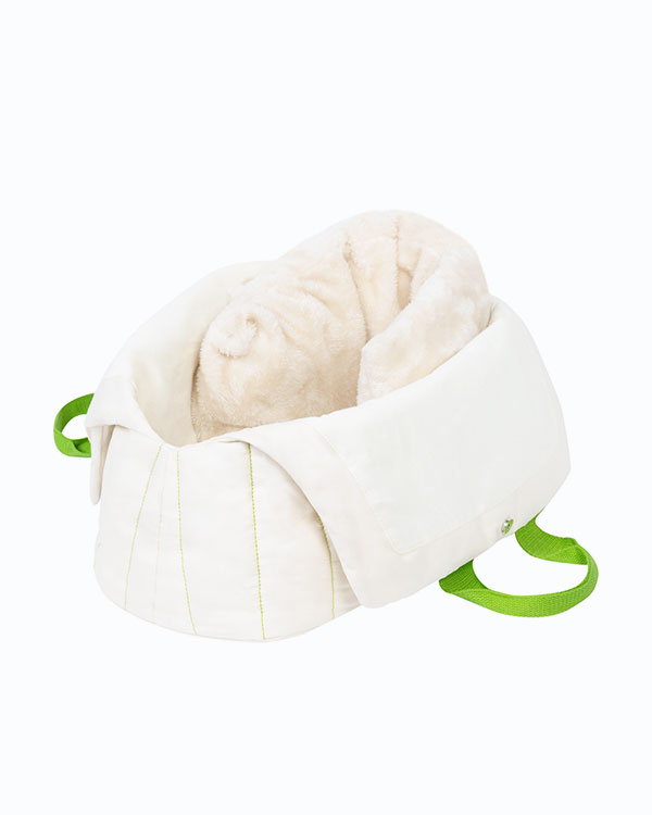 Сумка-переноска оснащена міцним дном, формованою підстилкою та карабіном безпеки. Особливістю цієї моделі є знімний м'який комірець, який забезпечує максимальний комфорт для шиї тварини. Сумка також дуже зручна у використанні завдяки широкому наплічнику на знімному плечовому ремені.