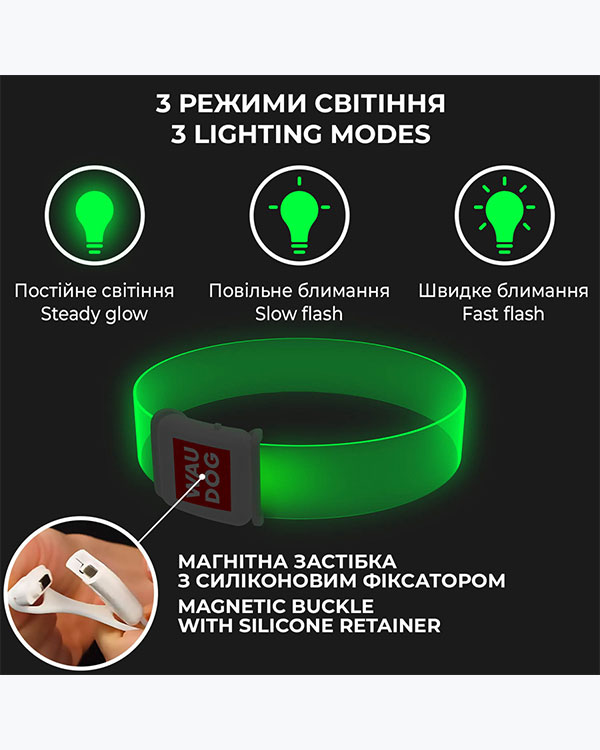 Понад 90% поверхні нашийника світиться яскравим зеленим кольором, що добре помітний на відстані, забезпечуючи максимальну видимість улюбленця у темний час доби, тому він є головним аксесуаром для безпечних вечірніх прогулянок.