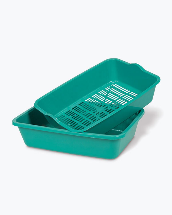 Глибокий туалет з сіткою дуже зручний у використанні, сітка оснащена спеціальними виступами, завдяки яким її зручно виймати. Матеріал, з якого виготовлені сітка і лоток, - первинний поліпропілен. Це дуже міцний довговічний пластик, який добре відмивається і не вбирає неприємні запахи. Доглядати за туалетом просто: достатньо мити після кожного використання.