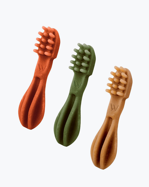 Цей набір поєднує три популярні форми жувальних ласощів Whimzees — Stix, Alligator та Toothbrush, створені для ефективного очищення зубів і свіжого подиху щодня. Різноманітні форми та текстури заохочують собаку до жування, допомагаючи зменшувати наліт і зубний камінь природним шляхом — під час улюбленого смаколика.