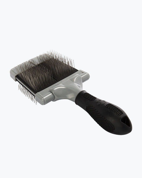 Щітка розроблена спеціально для собак і котів з кучерявою, середньою та довгою шерстю. Двостороння щітка-пуходерка не травмує шкіру, незважаючи на те, що щетина двох видів зроблена з нержавіючої сталі: вигнуті щетинки допомагають видалити ковтуни та сплутану шерсть, не пошкоджуючи її, а прямі щетинки – зробити шерсть гладкою та блискучою. Двостороння конструкція з гнучкою насадкою повторює природні контури голови і тіла вихованця, що не тільки полегшує грумінг, але також приносить задоволення вашому улюбленцю. Ергономічна ручка гарантує зручне та безпечне використання.