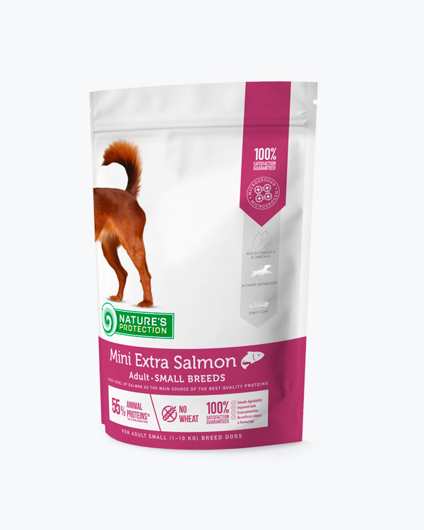 Відгуки на Сухий корм Nature's Protection Mini Extra Salmon Adult Small Breeds, для дорослих собак малих порід, з лососем, 500 г.