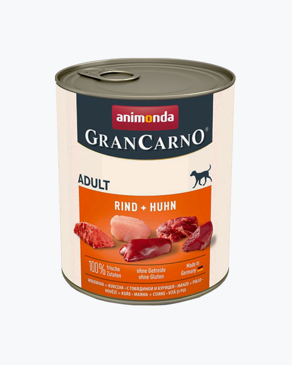 GranCarno Adult Beef + Chicken виробляється в Німеччині, не містить злаків, сої та цукру.
