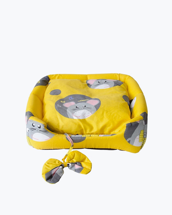 Лежак от Джека Вигвам, для собак и кошек, мышки на желтом фоне, 40х40х35 см
