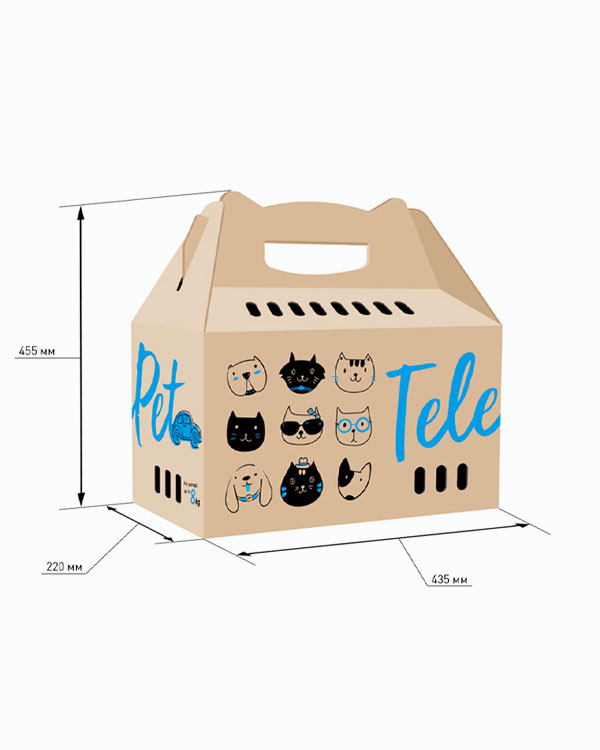 TelePet изготовлен из трехслойного экологически чистого картона. Ручки и дно усилены. Выдерживает нагрузку до 8 кг. Благодаря такой крепкой конструкции, вы сможете использовать TelePet не один раз. Прекрасно подходит для транспортировки вашего любимца к ветеринару.