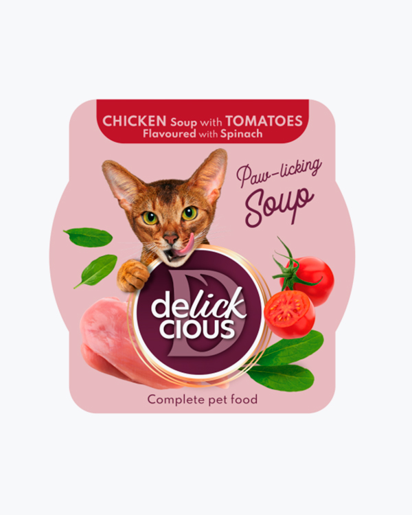 Суп для котів Delickcious Chicken Soup with Ham and Spinach, з куркою, шинкою та шпинатом, 85 г (12 шт)