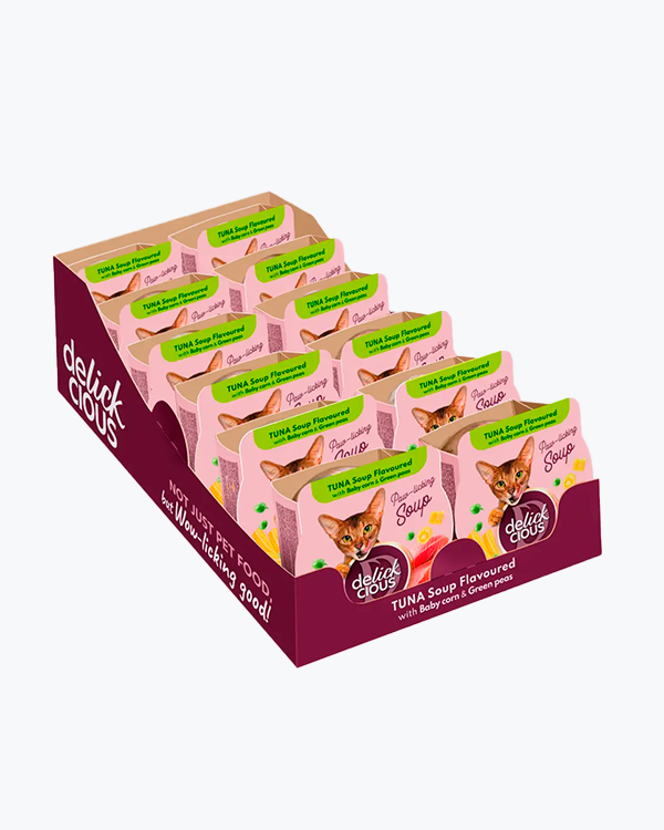 Суп для котів Delickcious Tuna Soup with Baby corn & Green peas, з тунцем, кукурудзою та горошком, 85 г (12 шт)