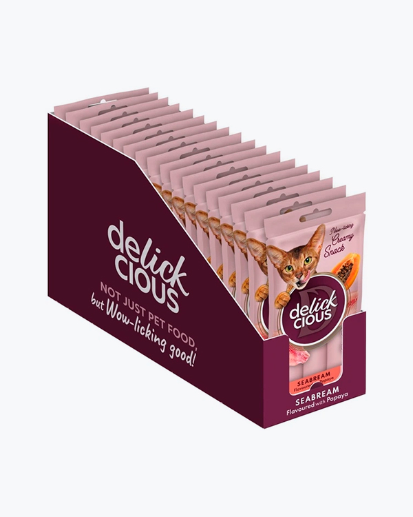 Крем-ласощі для котів Delickcious Seabream with Papaya, дорадо з додаванням папаї, (4*15 г), 18 шт