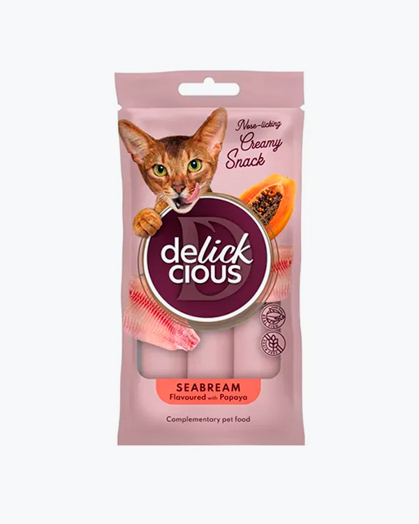 Крем-ласощі для котів Delickcious Seabream Flavoured with Papaya, дорадо з додаванням папаї, (4*15 г)