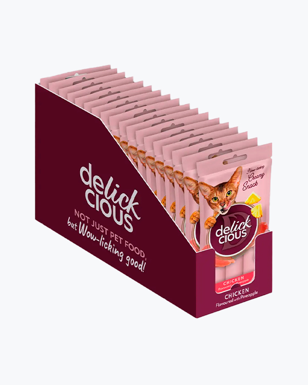 Крем-ласощі для котів Delickcious Chicken with Pineapple, курка з додаванням ананасу, (4*15 г), 18 шт