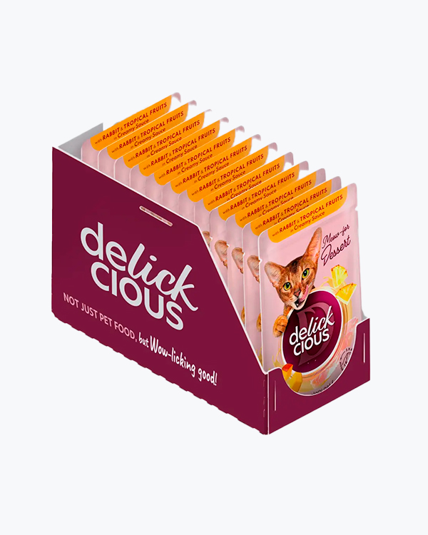 Вологий корм для котів Delickcious with Rabbit & Tropical Fruits ,cмужки з кроликом та фруктами, 85 г, (12 шт)