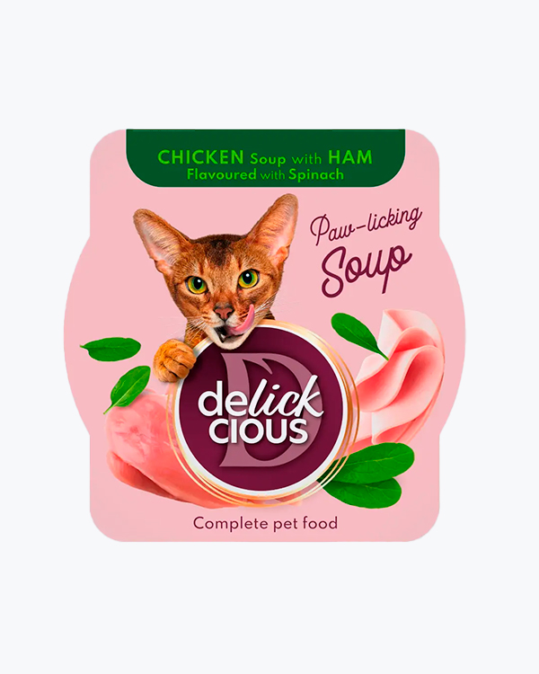 Суп для котів Delickcious Chicken Soup with Ham and Spinach, з куркою, шинкою та шпинатом, 85 г