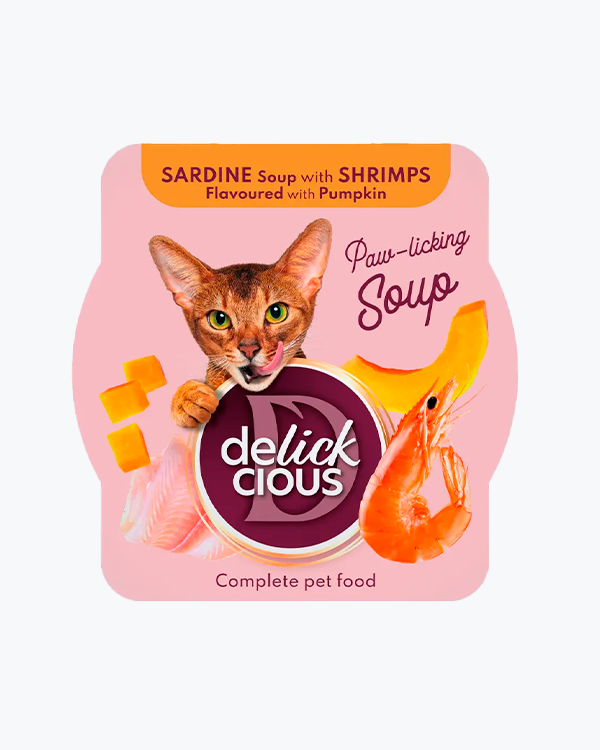 Суп для котів Delickcious Sardine Soup with Shrimps and Pumpkin, з сардиною, креветками та гарбузом, 85 г (12 шт)