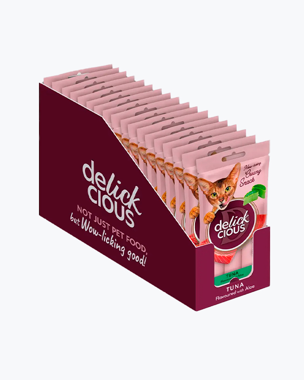 Крем-ласощі для котів Delickcious Tuna Flavoured with Aloe, тунець з додаванням алое, (4*15 г), 18 шт