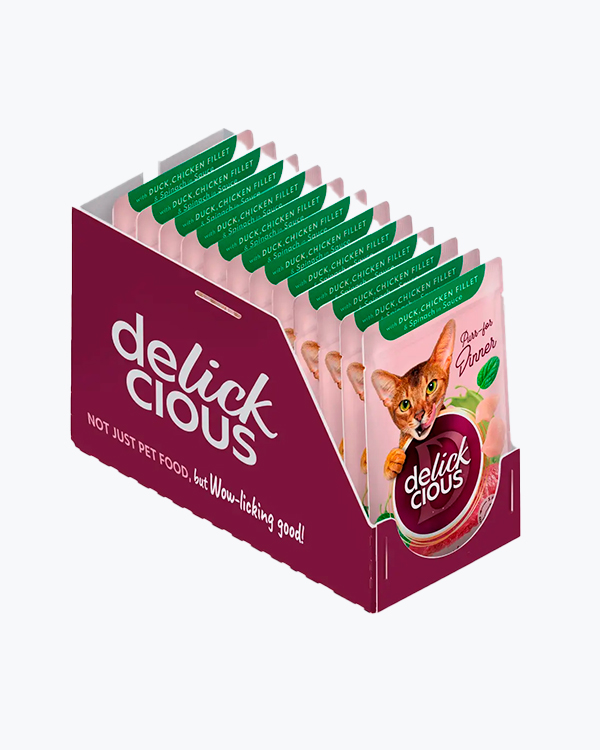 Вологий корм для котів Delickcious with Duck, Chicken Fillet & Spinac, з качкою, курячим філе і шпинатом, 85 г, (12 шт)