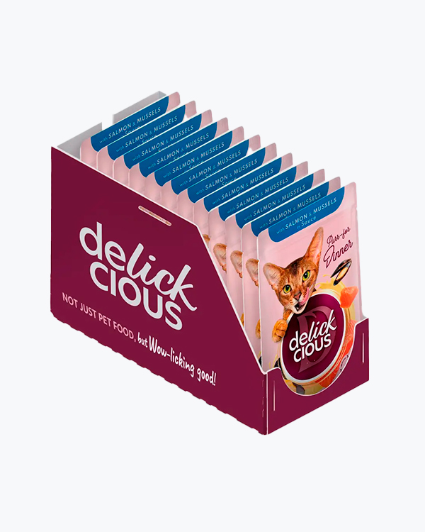 Вологий корм для котів Delickcious with Salmon & Mussels in Sauce, з лососем і мідіями в соусі, 85 г, (12 шт)
