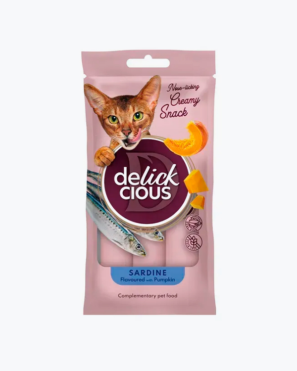 Крем-ласощі для котів Delickcious Sardine Flavoured with Pumpkin, сардина з додаванням гарбуза, (4*15 г)