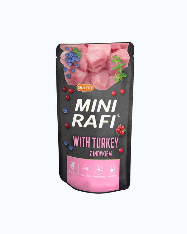 Вологий корм для цуценят, юніорів та собак малих порід Dolina Noteci Premium з серцем індички та гусиним печінкою, пауч 100 г