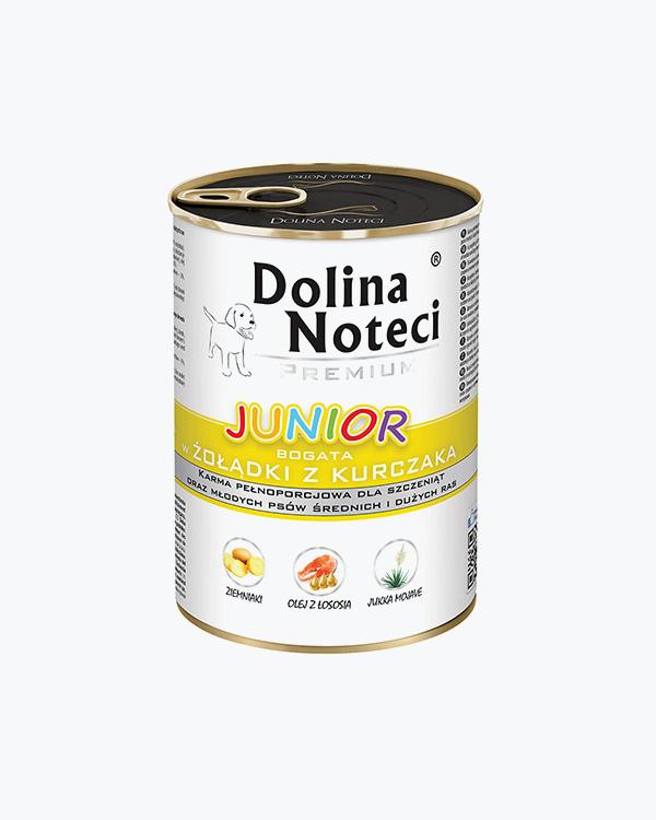 Консервований корм для цуценят, юніорів середніх і великих порід Dolina Noteci Premium з курячими шлунками, 400 г
