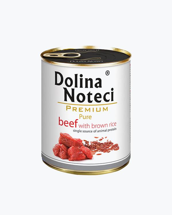Гіпоалергенний консервований корм для собак Dolina Noteci Premium Pure з яловичиною та коричневим рисом, 800 г