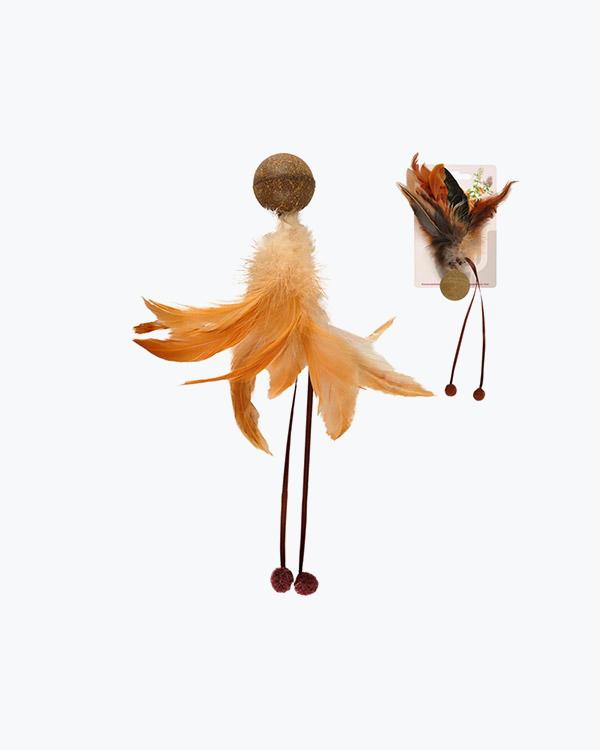 Іграшка для котів Flamingo Dangler Frizz Ball&Feathers вудка-дражнилка з м’ячем та пір’ям
