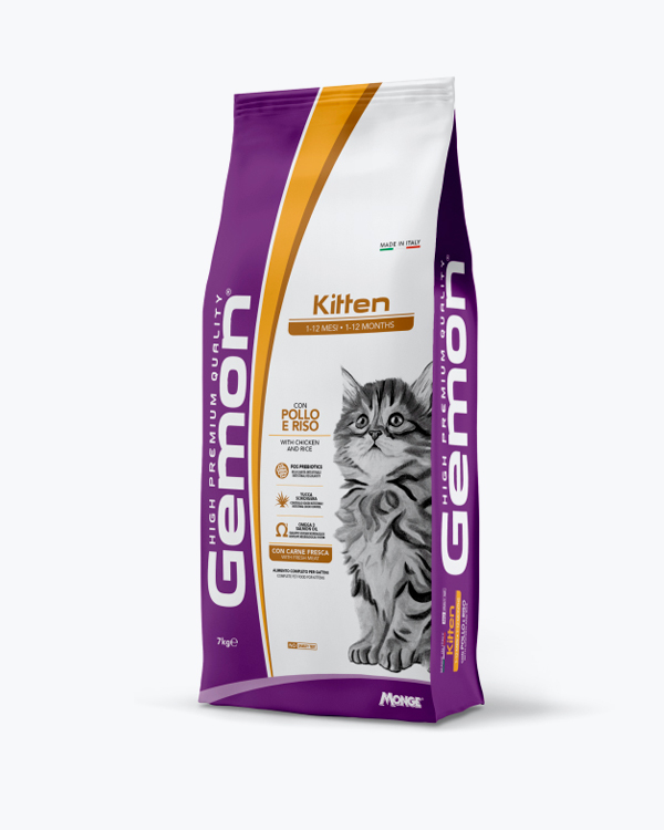Вологий корм для кошенят Gemon Cat Wet Kitten м'ясний мус з лососем та куркою 85 г, з/б
